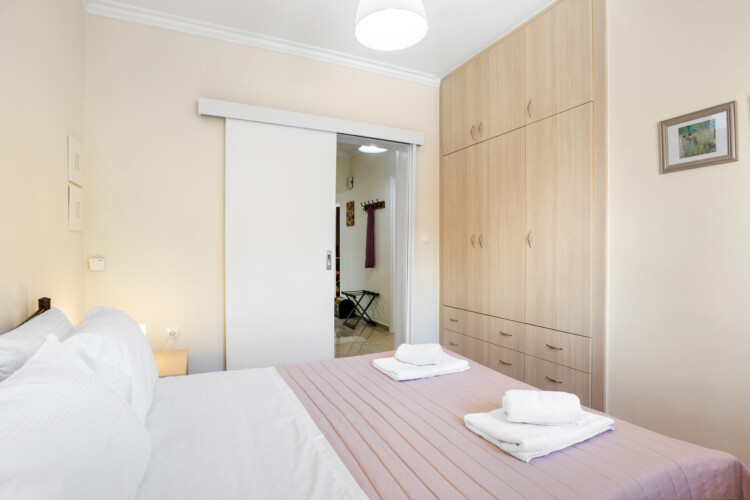 Dragonfly Apartment in Chania is located on the ground floor in a quiet and beautiful area of our city, ideal for a beautiful and carefree vacation only 2.5 km from the Venetian port of the old town and the Municipal Market of Chania, commonly known as the “Agora”. Within a short distance, you will find the beautiful sandy beach of Nea Chora at 3.5 km, the port of Souda at 4.5 km and the airport of Chania at 12 km away.