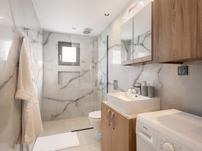 Modern bathroom: Featuring a shower for convenience.