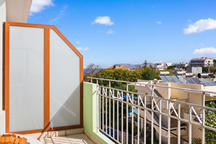 The maisonette is located on the second floor in a quiet area of Germaniko Pouli with enough space for a comfortable and enjoyable stay, as well as easy and quick access to the organized beaches and city center. The sandy beach of Aptera is located 500m away. Chrisi Akti beach is 2 km away and Agioi Apostoli beach is 3.1km away. There are supermarkets almost 100m away. There is a 24 hours, supermarket 600m away and also a bakery 600m away. Chania city center is located 3,5km away.