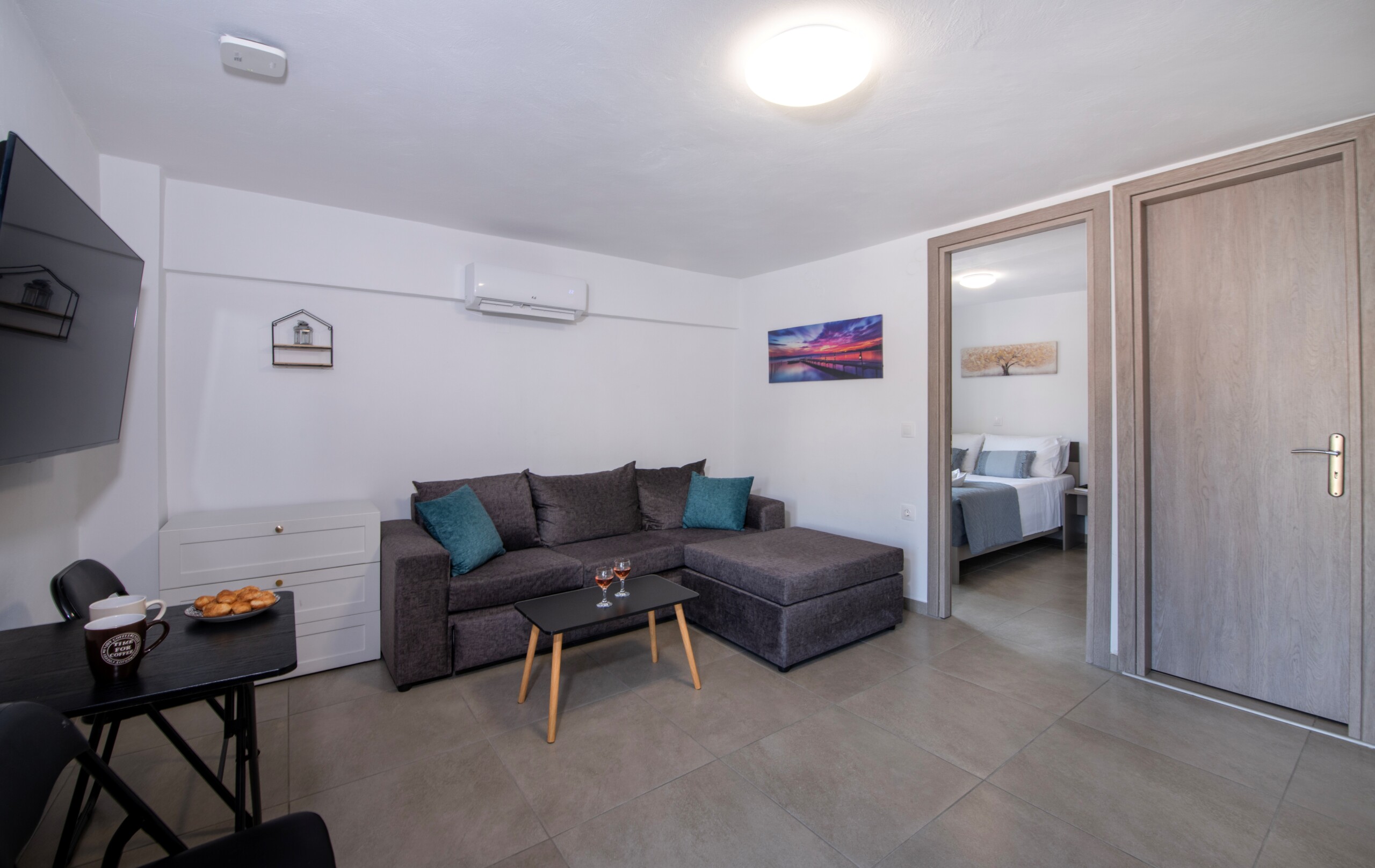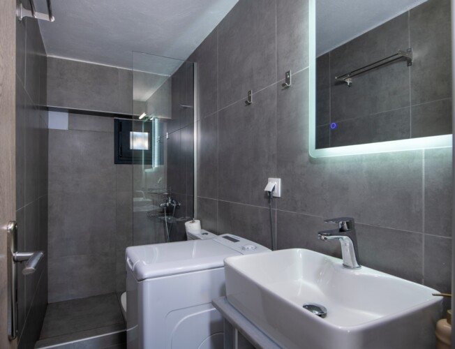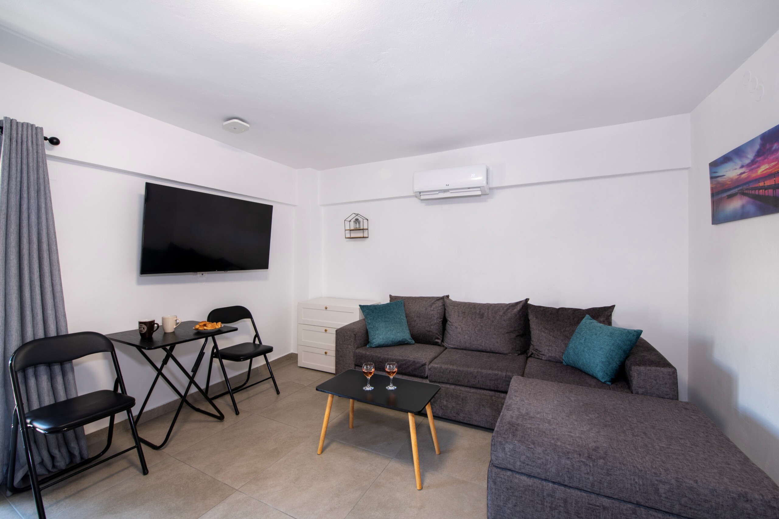 This is a construction from 2024 in the Chania area, combining modern design with all the electronic devices needed to meet your needs. Each room is equipped with its own air conditioning, television, and 300mbps internet. The kitchen is equipped with a variety of electrical appliances. There is also an electric iron and a hairdryer available.