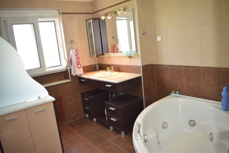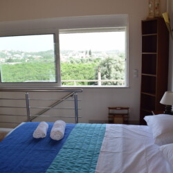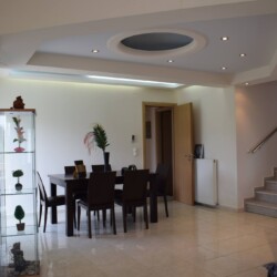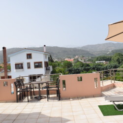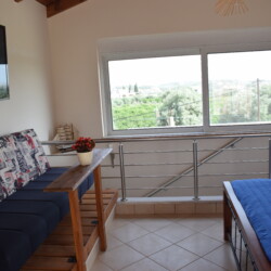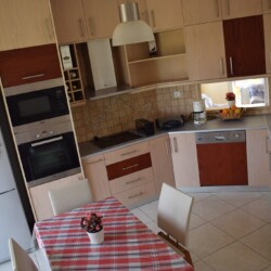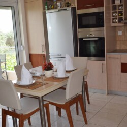 The modern maisonette of 152sqm is comfortable with 1 bedroom on the upper floor plus terrace equipped and 2 bedrooms and living/dining area, on the lower floor. It has a fully equipped kitchen, 4 A/C, flat screenTV, a laundry machine and a bathroom with free toiletries. The yard is full of various trees and flowers, plus free parking and a sitting area for dinning.