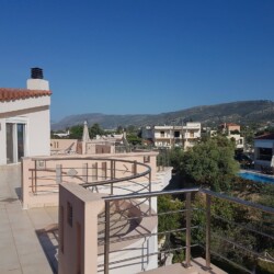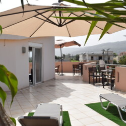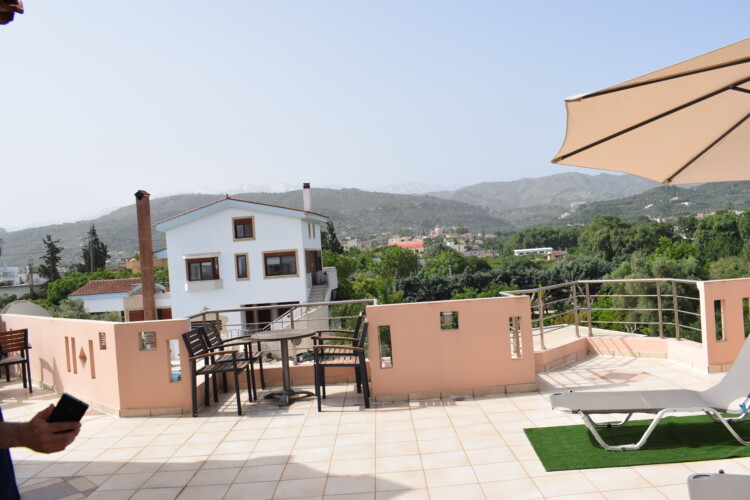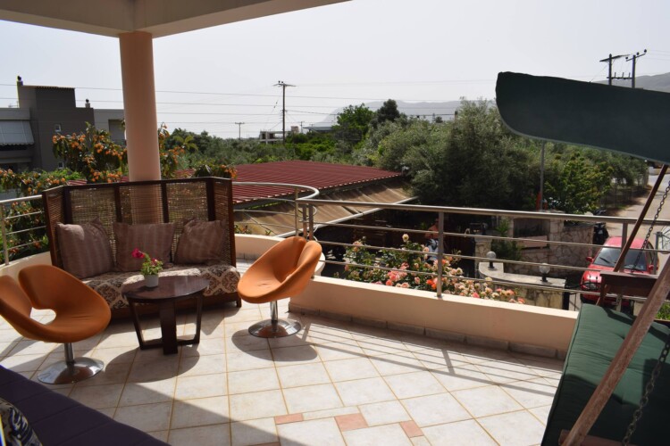 Ilias Villa in Chania is situated in Perivolia, just 3km away from the city centre of Chania. From the upper floor large terrace with sun beds and parasol, it has unobstructed views to the sea and the mountains 360°. From the low floor balcony which is also equipped with sofa, table and chairs, you can see the sea and the mountains plus olive groves and orange groves. Perivolia took its name because of the many fruit gardens in the area.
