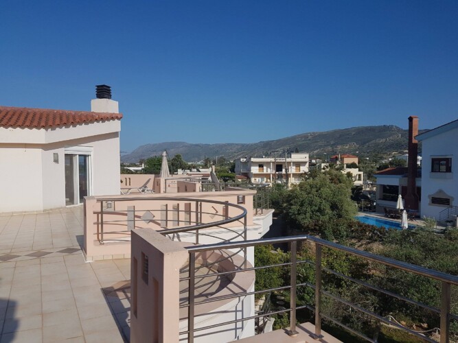 The nearest beach is less than 4 min away (3.8km). In 5 min you reach the Motorway leading to all famous attractions of the island. Indicative is that Balos is 50km, Falassarna 49km, Elafonissi 76km and Samaria gorge 45km away. The well-known resorts of Platanias and Agia Marina with vatious cafes, beach bars, night clubs and restaurants are 10-15 min away, pending on the traffic.The beautiful Therisso gorge is 10min drive. Marathi and Stavros beaches and the monasteries of Agia Triada and Gouverneto in Akrotiri peninsula are 20-25min drive.Airport is 20km and port 10 km away.