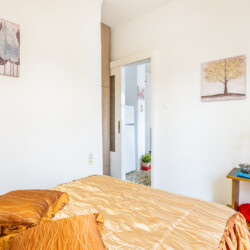 The apartment is on the second floor of the building and it has one bedroom. It can host up to 3 people. There is a double bed in the bedroom and one sofa bed in the living room. It is fully equipped with new amenities such as air-conditioning, WiFi, washing machine, microwave, coffee machine, TV and many more.