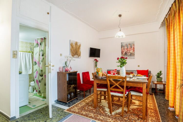 Katerina’s Apartment is located in Chania City Center on the 2nd floor and it is perfectly located as you’ll find yourself right at the city center and 2 minutes by foot from the picturesque old town. The organized beach of Nea Chora is just 300m away. Nearby you will find shops, supermarkets, bakeries, cafeterias and the intercity bus station which is 100 m away. From there you can easily take the bus to visit the most famous beaches of Chania such as Balos, Falasarna and Elafonissi.