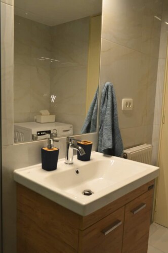Bed linen, towels and cleaning kit are also provided during your stay. The accommodation provides free WiFi access.There is a bathroom with a shower. Also at your disposal there is a washing machine, hair dryer, iron with an iron board and a laundry washing drying racks.