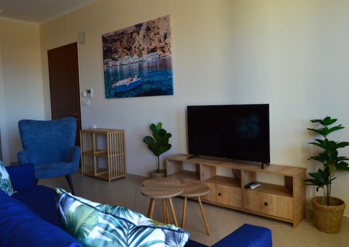 Maleme Ocean Front Serenity located in Maleme. Maleme Village offers a delightful blend of traditional charm and modern amenities, with cafes, tavernas, and restaurants scattered from the village center to the beautiful beach just 300m away. Situated just 16 kilometers from the vibrant town of Chania. Maleme is part of the Municipality of Platanias, providing easy access to both urban conveniences and serene natural landscapes. The village enjoys a convenient location, with the international airport of Akrotiri a mere 34.8 kilometers away and the historic Old Harbour of Chania just 18.7 kilometers away.