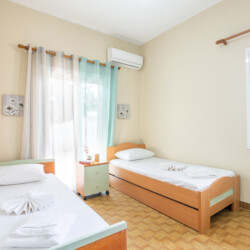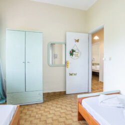 Bedrooms: Three total. Two rooms have double beds, air conditioning, and TVs. The third has two single beds and air conditioning. A baby cot is available upon request.