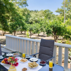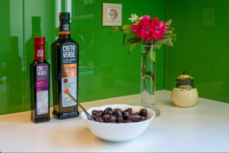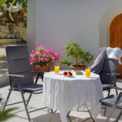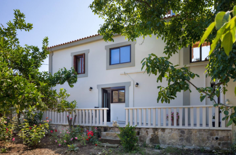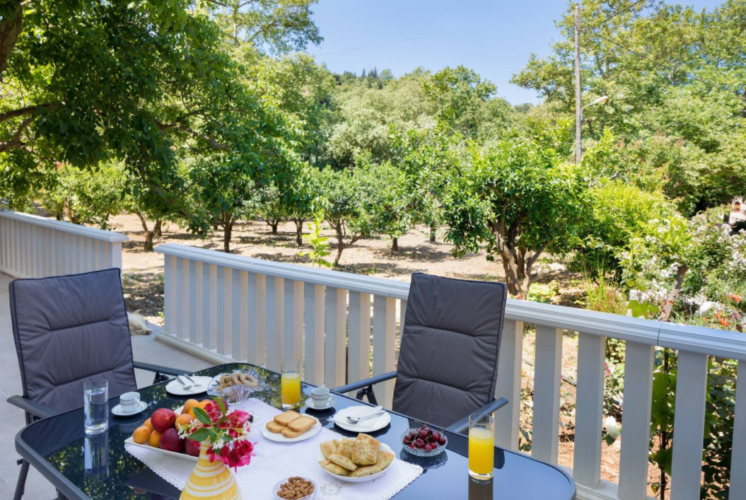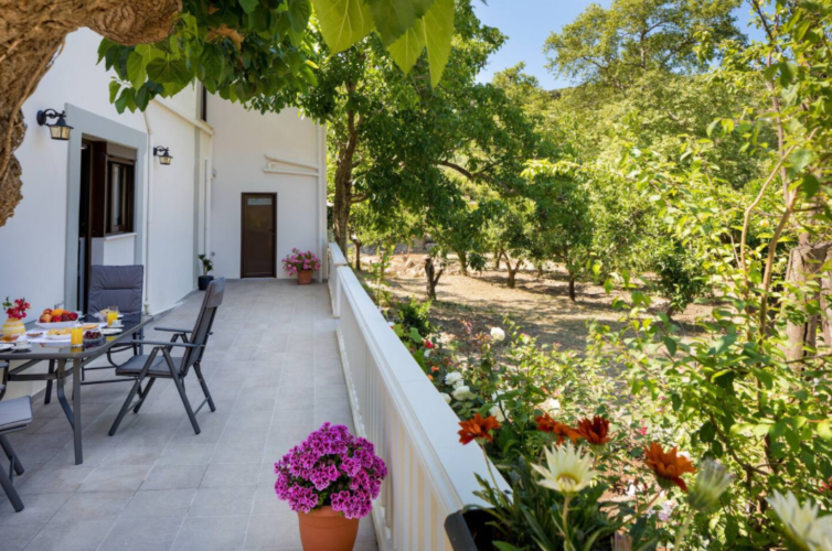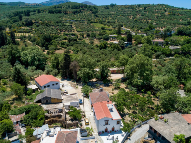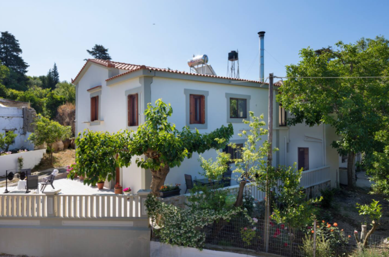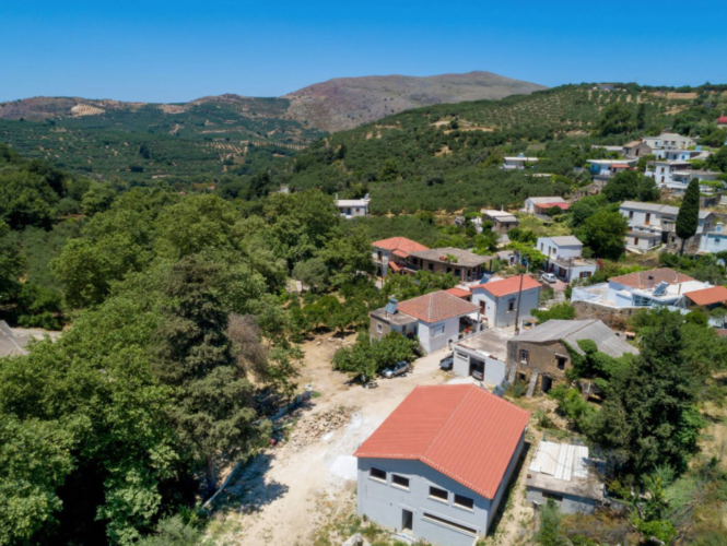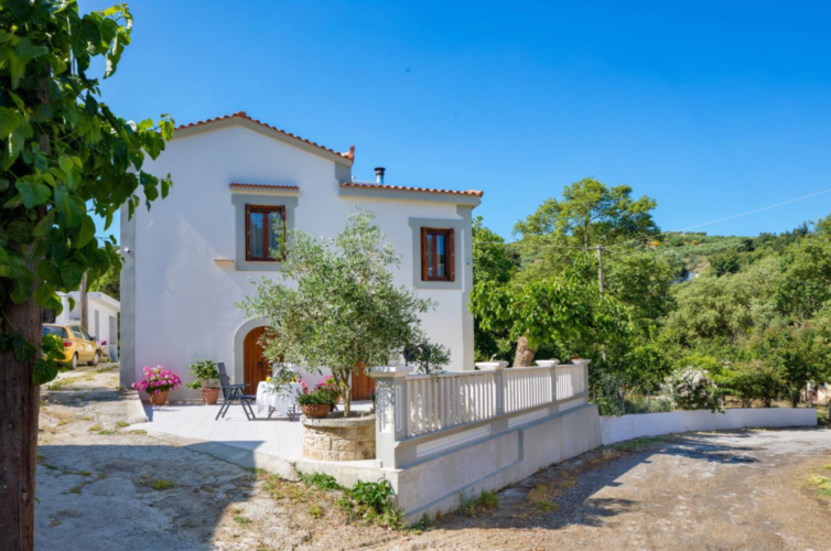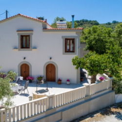 The house is situated in an interior agricultural area that produces oil, wine, and cheese, with views of the White Mountains, particularly the Roka Gorge.