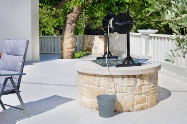 At the front of the house you can find outdoor furniture such as a dining table with chairs where you can enjoy your meal while watching the spectacular surroundings and admire the traditional well that is situated there.