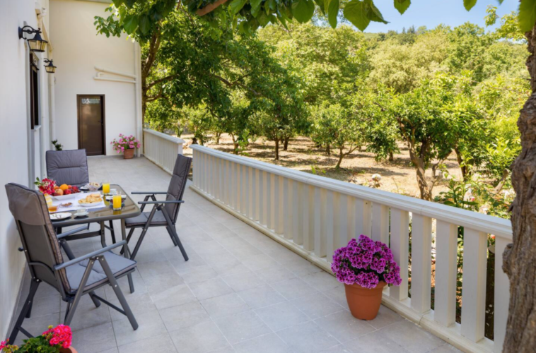 Lastly, you will find a balcony at the back side where there is furniture (table and chairs). You can easily choose where you would like to sit preferable outside to enjoy the beautiful environment and the clean air.