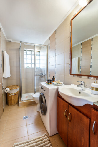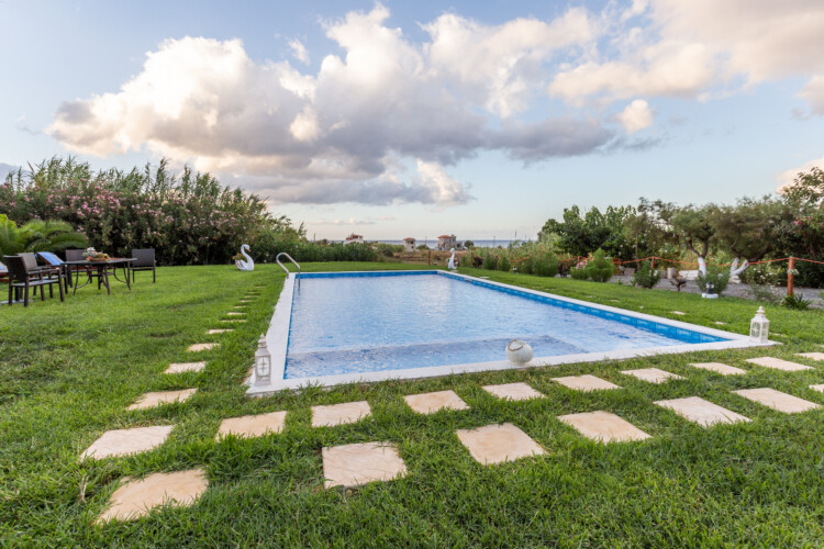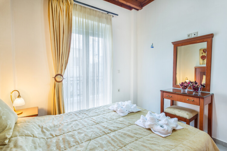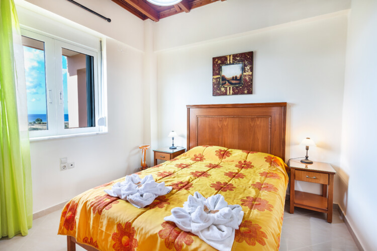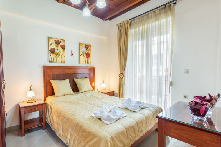 This wonderful apartment situated on the first floor with its amazing swimming pool is suitable not only for adults but also for toddlers since it is integrated with a shallow children’s pool, including sun beds, parasols, balconies all around it, a veranda and outdoor furniture to relax and enjoy your meals in the green environment. It has two bedrooms with double beds, a bathroom with shower, an open plan fully equipped kitchen, dining and living space. Also, it provides free linen and towels, Wi-Fi free Internet, a TV, a private parking lot, air conditioning system, a laundry machine, an iron/ironing board, a hairdryer, a refrigerator, a kitchen cooker, an electric kettle, a sandwich maker, and a filter coffee machine. Ιf you are a larger group of people, you can also book the Socrates Holidays Apartment 1 that is in the same building. Both of the apartments can host up to 9 guests. All you have to do in that case, is book the Socrates Holidays Apartment 2 with the number of guests that will stay there and the Socrates Holidays Apartment 1 at the same dates with the number of guests that will stay there. The total amount of guests should not be above 9. If you are more than 9 people in your group, you can also book the Socrates Holidays Apartment 3 that can host up to 5 people and (or) the Socrates Holidays Apartment 4 that can host up to 5 people. Those are in the same building just a few steps away from the building that has the apartments 1 and 2. Depending on the group number and on the availability, you can also book one, two or three of the other apartments at the same dates.