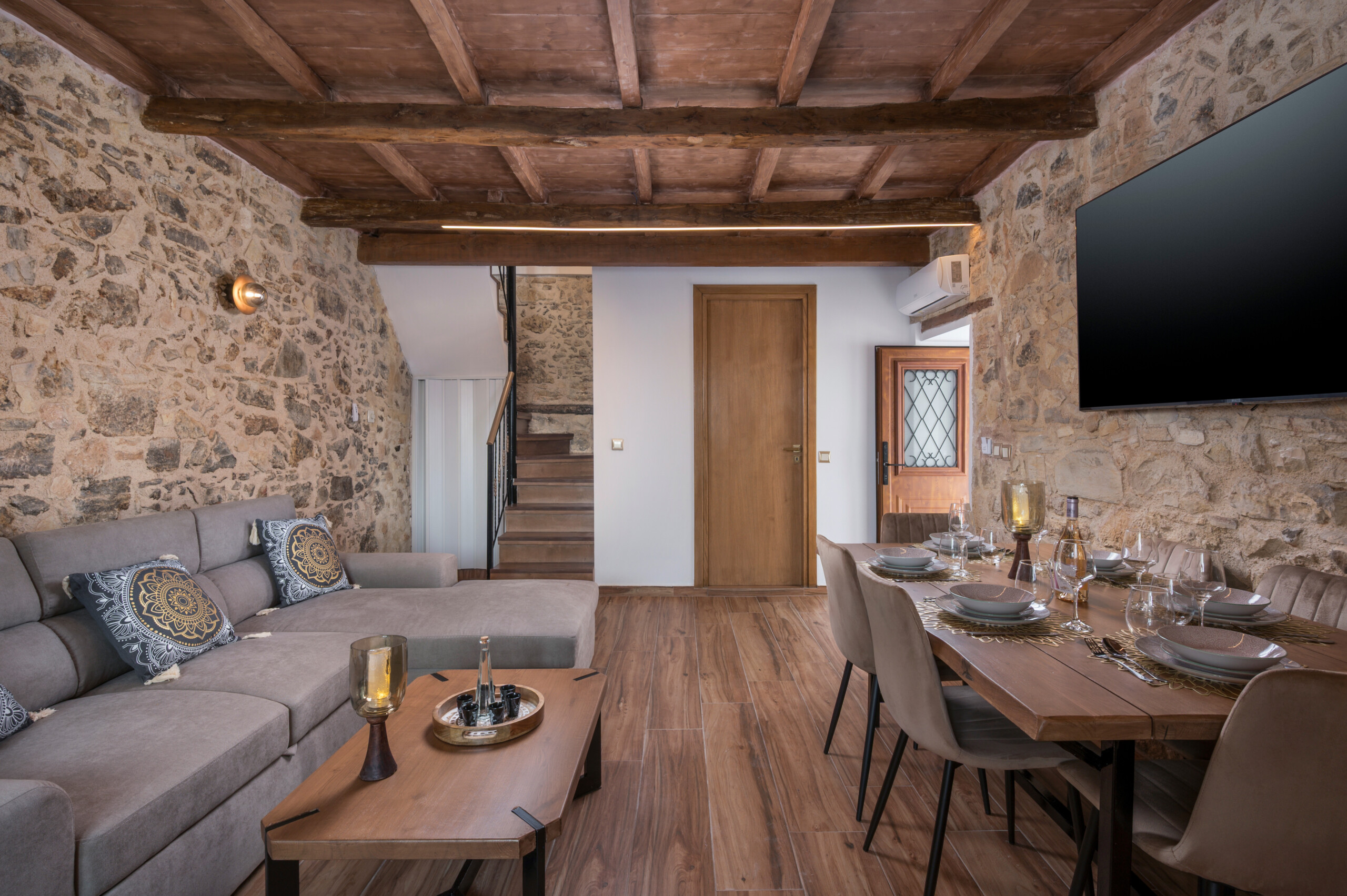 Discover the charm of Crete in this beautiful two-story stone house, inspired by Venetian architecture and enriched with traditional Cretan elegance. The house is located in Kallithea Vamvakopoulou, one of the most picturesque and closest villages to Chania city, just 3 km from the city center and the famous Venetian Harbor.