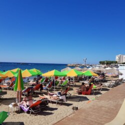 The small road that runs along the beach is lined with cafés and (mainly fish) restaurants . There are also a few hotels. The area is not that well known with tourists but it is a great alternative to staying in the old town: you have a beach on your doorstep, parking space for you car, some of the best fish restaurants in town and you are only 10 minutes on foot (walking along the seafront) from the Venetian harbour and the centre of the Old Town.