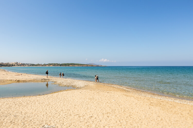Nea Chora (which means ‘new town’) was the first modern part of Chania to be built outside the Venetian fortification wall in the early 18th century. In a sense it is the oldest part of the modern town. Nea Chora has a fishing harbour and a good sandy beach which is popular with local people. It is in effect Chania’s town beach and it is a nice one.
