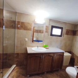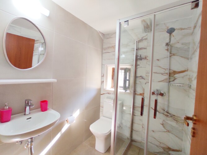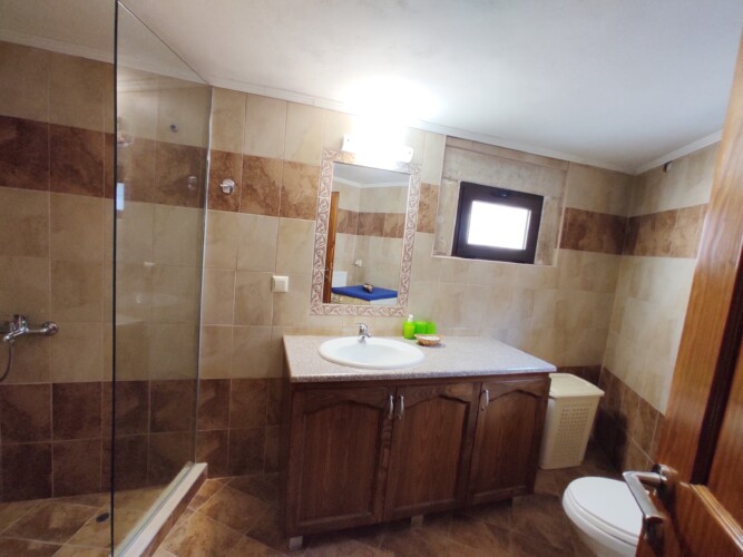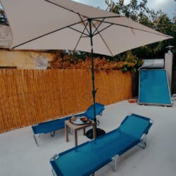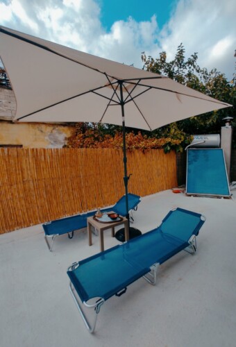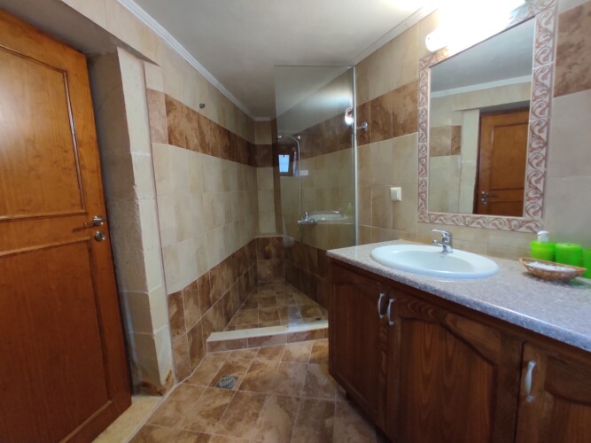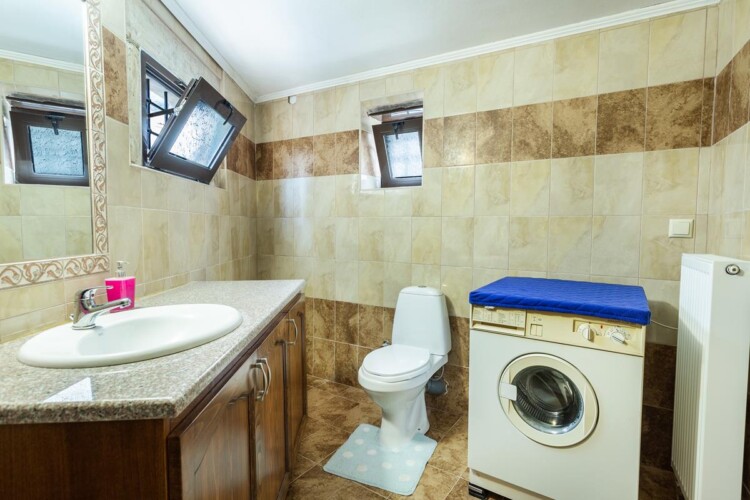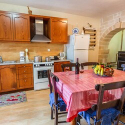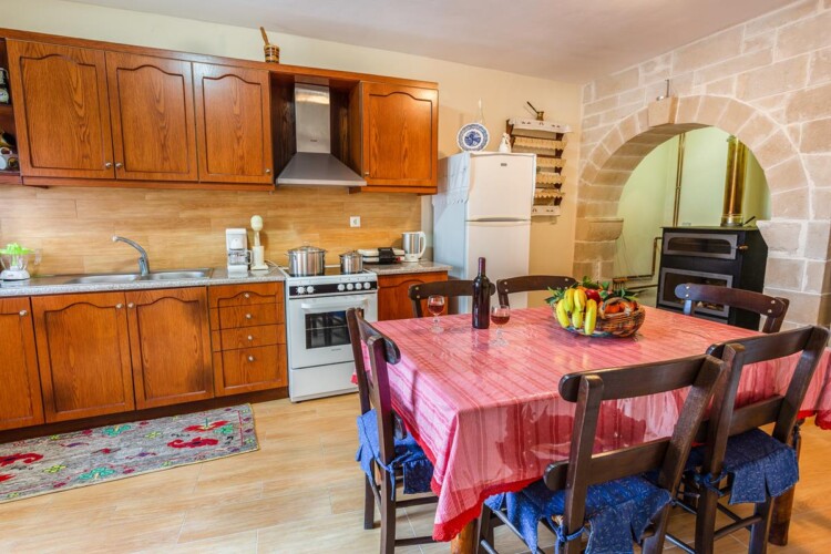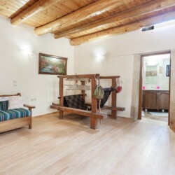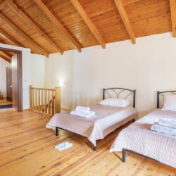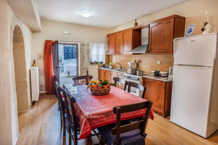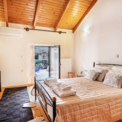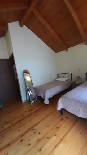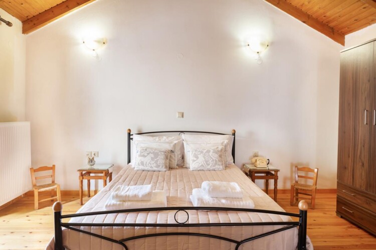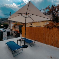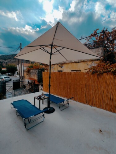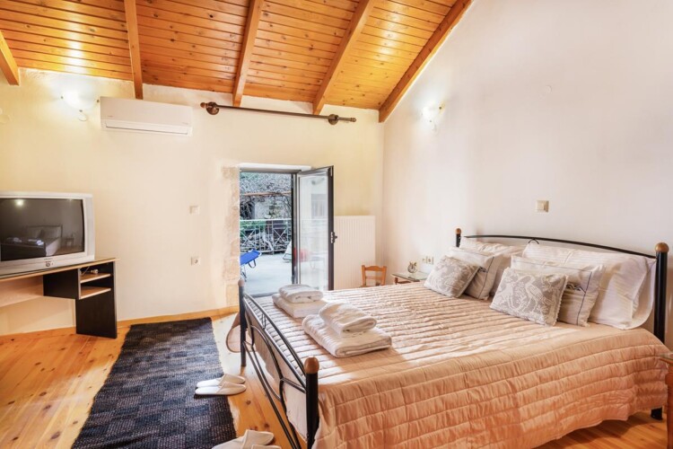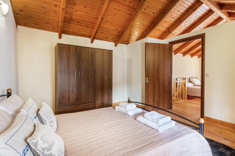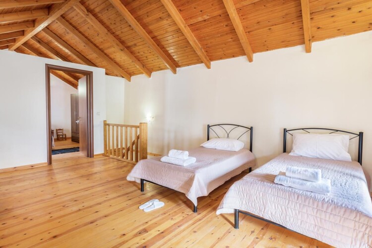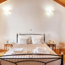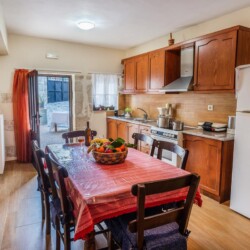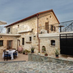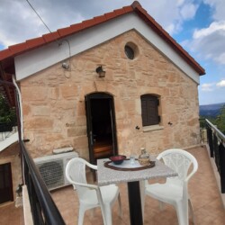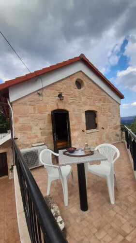 This lovely traditional style maisonette with its beautiful combination of stone and wood decorated with a traditional and antique style is situated in a wonderful pure green environment. On the ground floor, there is an open plan fully equipped kitchen and dining space, a living area with a flat screen television, an old broadloom, a sewing machine, a six seat dining table and a bathroom with shower. On the upper floor, there are two bedrooms both with an air conditioning system, heating and a spacious veranda with a parasol. One of them has a double bed with a wardrobe and a TV while the other one has two single beds and one baby cot. On the outdoor area, there is a patio with dining furniture and a retractable awning where you can enjoy your meals or your drink including a private parking lot. The accommodation provides free linen, towels, Wi-Fi free Internet, TVs, air conditioning units, a laundry machine, an iron/ironing board, a hairdryer, a refrigerator, a kitchen oven, a sandwich maker, an electric kettle, a filter coffee machine, an electric drink mixer, an electric lemon squeezer and a private parking lot.