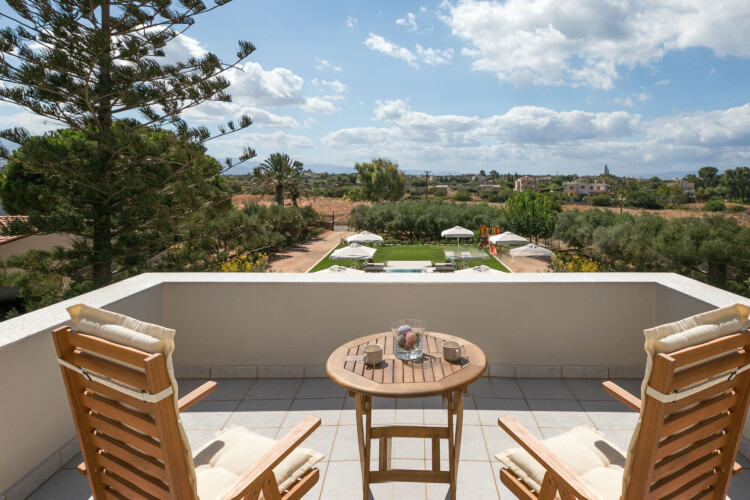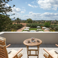 The outside area of the Villa includes a eco heated salt water pool of 65 m2 with hydromassage, comfortable balconies, a big garden to enjoy relaxing moments and an outdoor shower to keep cool under the Cretan sun. There are also a large parking area for 4 cars and Wi-Fi access both indoors and outdoors.