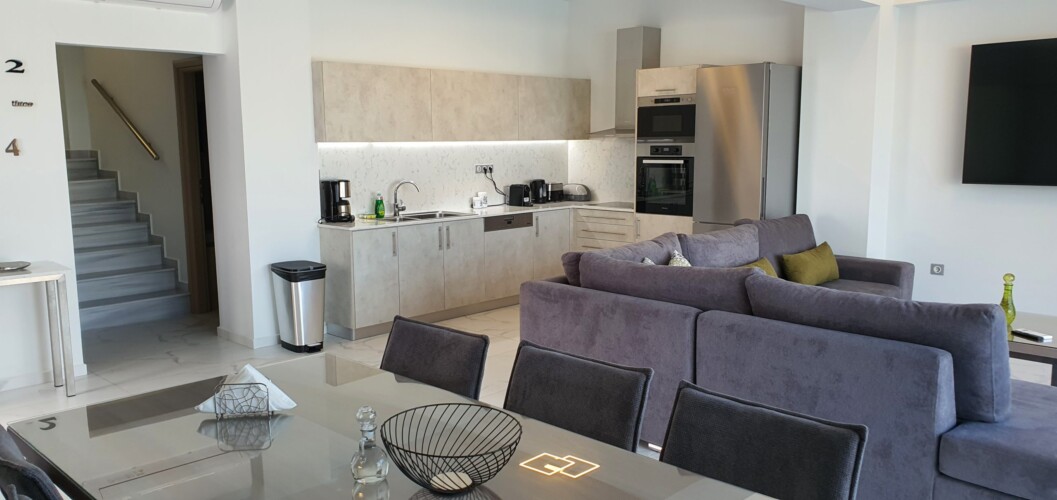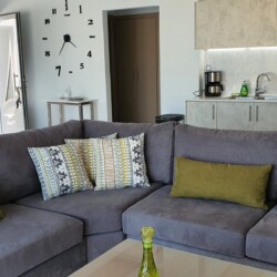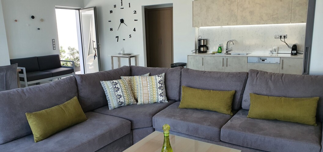 Villa sea view Agios Onoufrios is a brand new place, with modern and warm furniture and decoration in the area of Agios Onoufrios. If you are a group of more than 6 guests you can book the sisters of villa which are next to each other. There is a quick access to the city center and close the national road of Crete where you can not only easily explore western Crete and its sandy beaches such as Falasarna, Balos, Elafonisi but also all the other cities of Crete such as Rethymno, Heraklion and Agios Nikolaos. The distance from the villa to the city center is 9km and the nearest beach is Agios Onoufrios (1km foot distance or 2km driving distance).