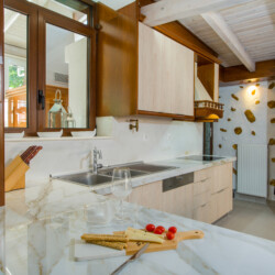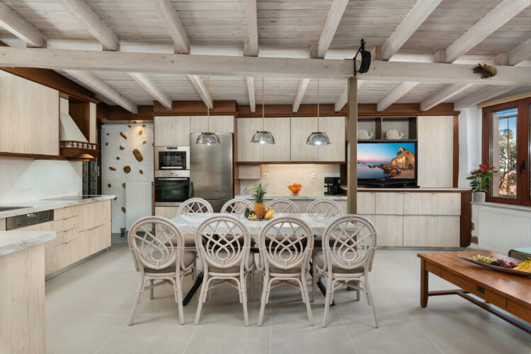 The villa consists of 2 floors, as you get into the villa, on the low level you will meet the indoor pool, the jacuzzi with a bathtub facing the garden makes you relax. On the same level there is a fully equipped kitchen with all the mandatory electrical devices & utensils such us a refrigerator, a kitchen, an electric kettle, a sandwich maker, toaster oven, a filter coffee machine, a dishwasher, a juicer maker and a microwave. In the living room there is a HD smart TV where you can watch your favourite movies. On the same level there is a second living room with a comfortable sofa, a small bathroom with a shower will be perfect for the guests living on the ground floor, two bedrooms with queen size beds and the super comfortable anatomic mattresses. There is also a third bedroom on the ground floor with a queen size bed and en-suite bathroom, the same bathroom has an entrance also and from the living room if you want.
