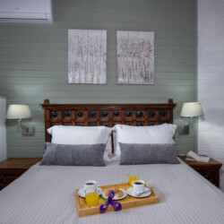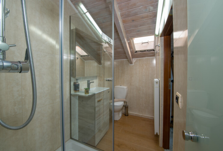 On the first level there is the Master bedroom with king size bed, en-suite shared bathroom, and TV. The second bedroom has a double bed, and the third bedroom has one single bed. All bedrooms have super comfortable anatomic mattresses. The full bathroom upstairs has a shower for the comfort of all guests. The accommodation provides free linen, bath towels, free Wi-Fi access, air conditioning in all areas & bedrooms, a washing machine, a clothes dryer, an iron with ironing board & a hairdryer.