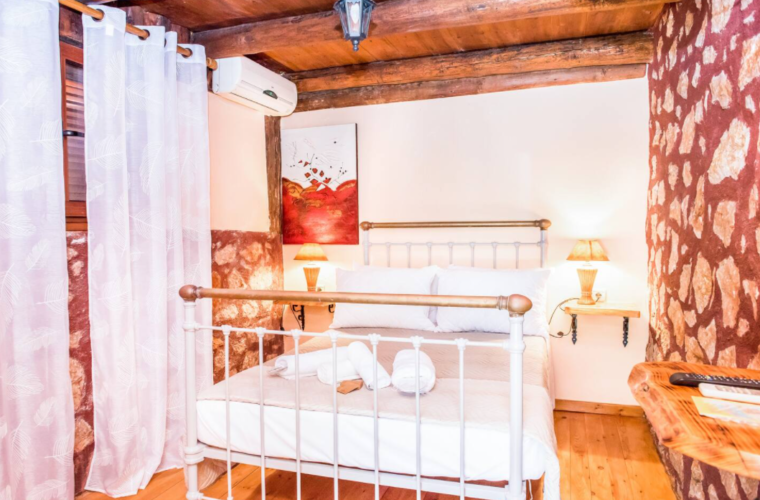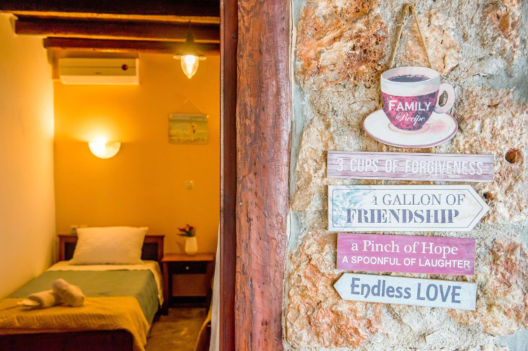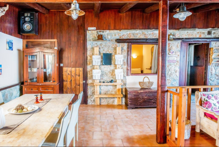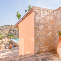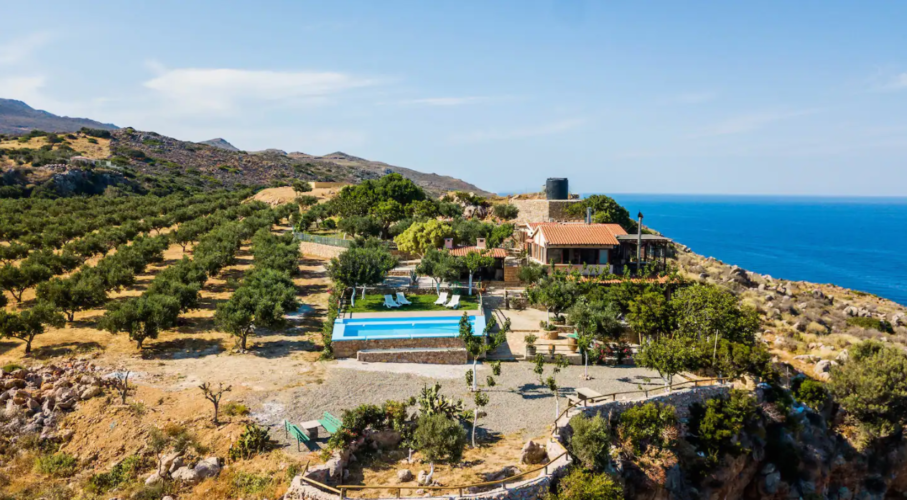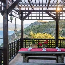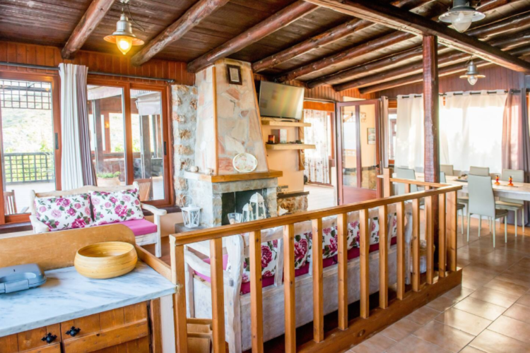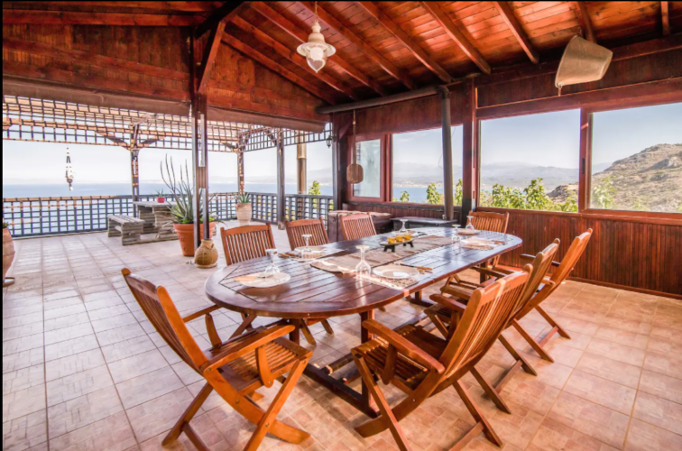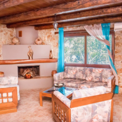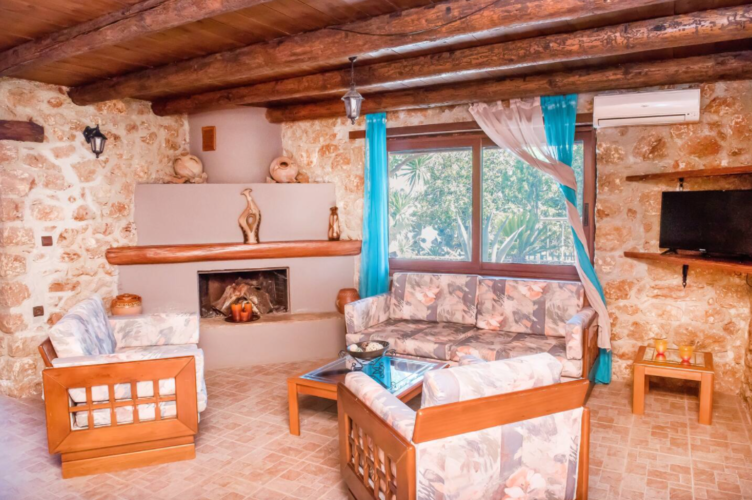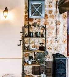 Akrolithos is a villa with private pool in Kolymvari with a spectacular yard is in Afrata’s traditional fishing village, on a lovely and charming sea bay with a fish tavern for swimming and fishing. It is 6 kilometers away from Kolymbari and provides tourists with true leisure and solitude. Because of its location, you will feel compelled to visit the remainder of the island and the adjacent beaches.Akrolithos Villa with private pool in Kolymvari is located in a quiet and secluded location amongst Crete’s natural landscape! The shared grounds consist of large courtyards, gardens with hammocks, bbq facilities with a kitchenette, children’s playground, and pool. It is spacious with breathtaking mountain and sea views!, is air-conditioned, with its own fully equipped kitchen and bathroom and has its own working fireplace making it suitable for both summer and winter excursions! Ideal for large families, friends, nature lovers and romantics! The atmosphere of the isolated property will make you feel like you own your own piece of heaven making your stay unique and unforgettable after discovering a different quality of life!! Located in the village of Afrata, 35 km from the port of Souda and 41 km from the International Airport Chania.Afrata is at an altitude of 160 meters, providing Akrolithos Villa with a panoramic view of the gulf of Chania and a 10min hike to Afrata beach. Kolymvari is only 6 km away, with quick access to the highway, to enjoy all other famous beaches of the Chania prefecture.